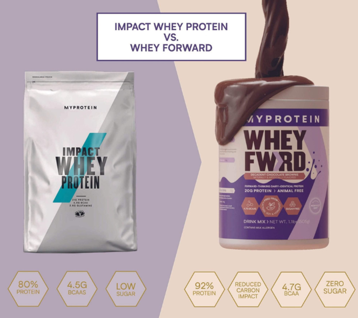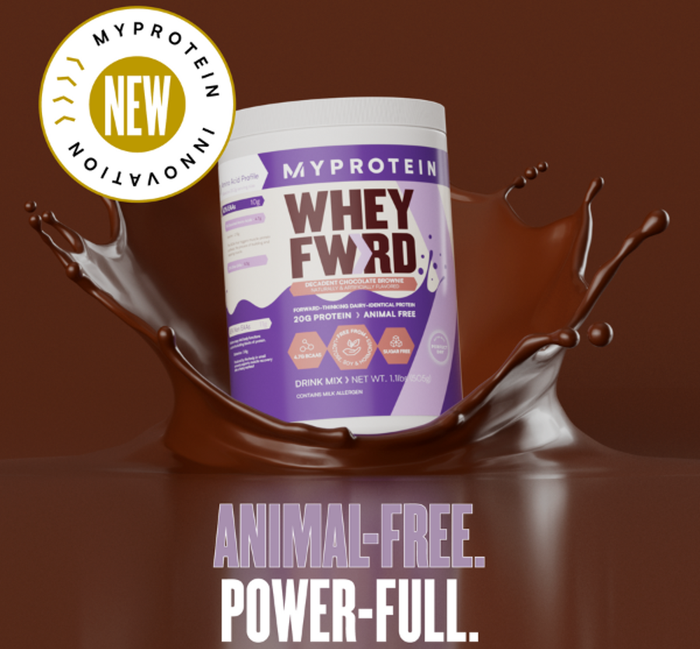 Myprotein has partnered with Perfect Day to create a dairy-identical whey protein powder that's animal and lactose-free. Designed to power performance and fuel recovery like traditional whey. It has a complete amino acid profile and is packed with 20g of protein, 4.7g of BCAAs, and 0g of sugar.