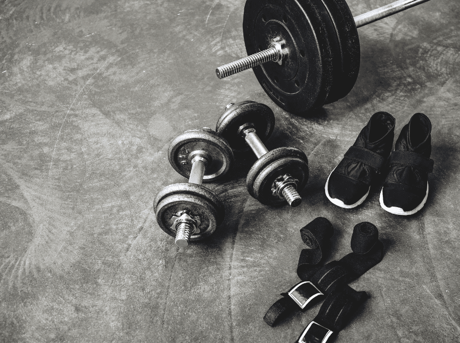 For this routine, you'll need a barbell, some free weights, and a step platform.
