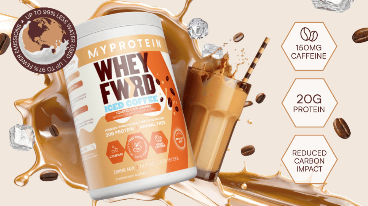 Coming this August, Myprotein will launch all new Iced Coffee flavors of Whey Forward! You’ll be able to take your protein in three delicious new flavors including Toasted Café Churro, Roasted Chocolate Coconut, and Spiced Dirty Chai! With 20 grams of protein and 4.7 grams of BCAA’s per serving, the new Iced Coffee Whey Forward will deliver the same macros as traditional Whey Forward. And just like the original whey alternative, the new flavors are free of lactose, soy, and hormones, promoting easier digestion.