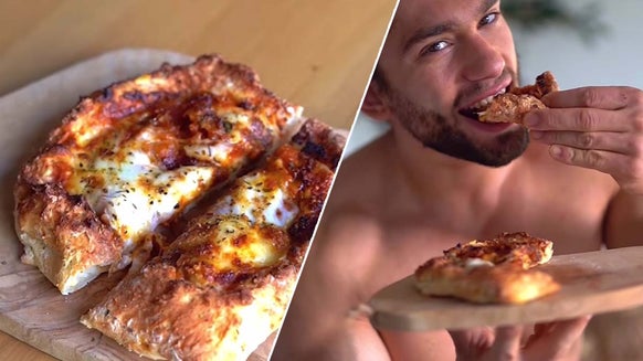 Cauliflower-crust pizza Spinach salad with hard boiled egg and strawberries