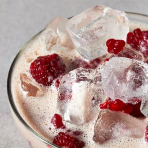 1 Scoop Impact Whey Protein – vanilla flavour 4-6 drops of FlavDrops – strawberry flavour Handful of frozen berries 150ml milk of choice or water Optional: Oats or banana Optional garnish: more berries and Sugar-Free Strawberry Syrup