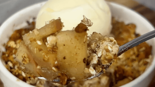 Have a cozy night in with this Skillet Protein Apple Crumble....