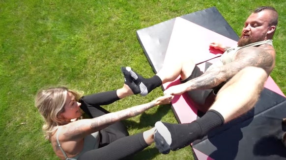 Now toast the pita, cut in half and open. (Be careful not to burn your hands.) Stuff with some leaves of little gem lettuce and then spoon in the chicken caesar filling. Top with pieces of crispy ham and some extra chives.