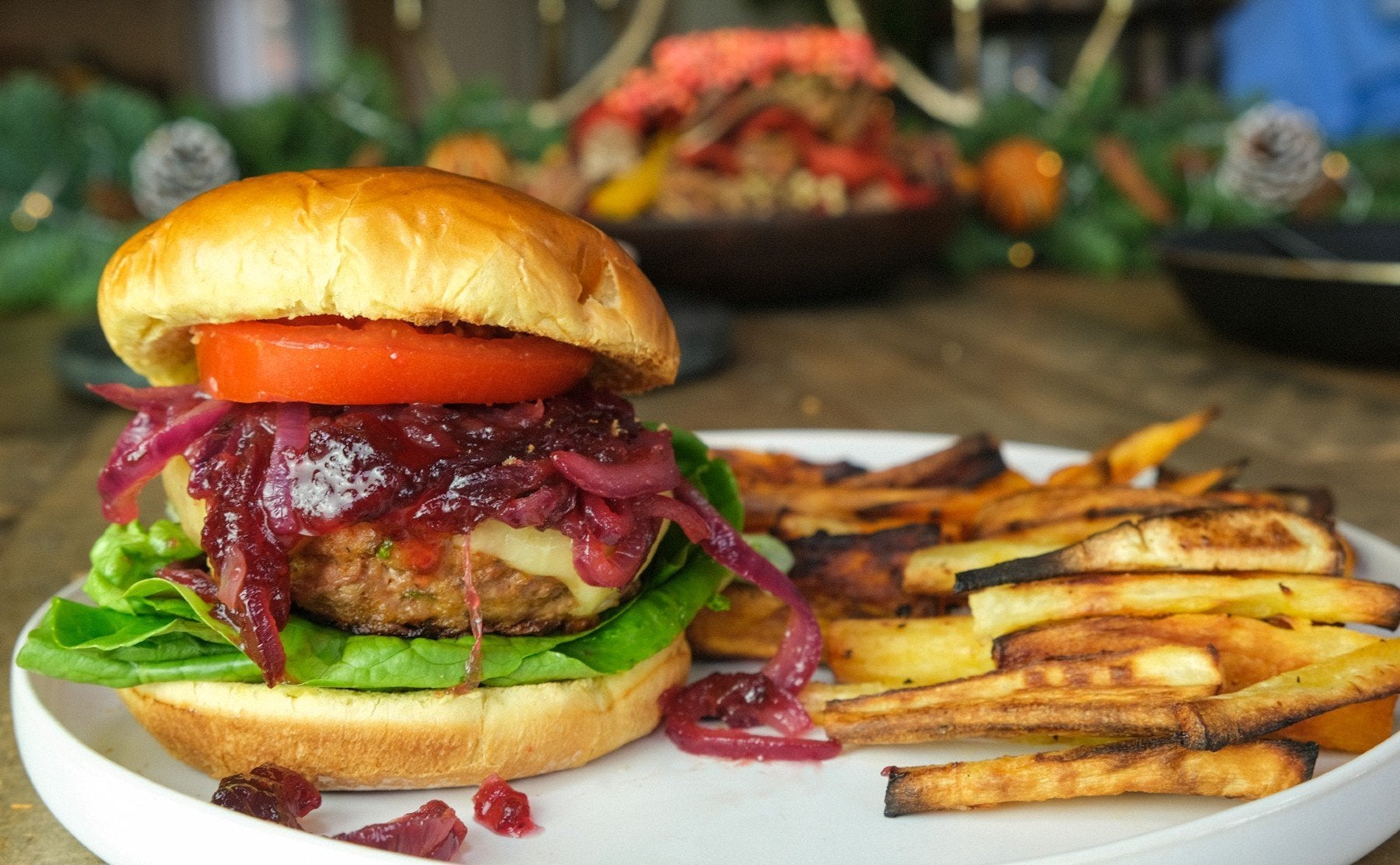 This delicious festive burger is the ideal warm up act for the main event Christmas day. Using lean turkey mince to make your own patties is a great way to keep on top of exactly what goes into your burger — and you can season to your own individual taste too.