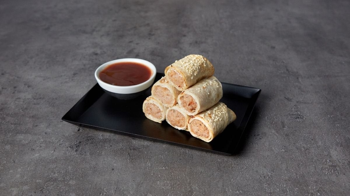 4) Starting from the bottom of each wrap, use both hands to roll upwards until you have a tight sausage roll.