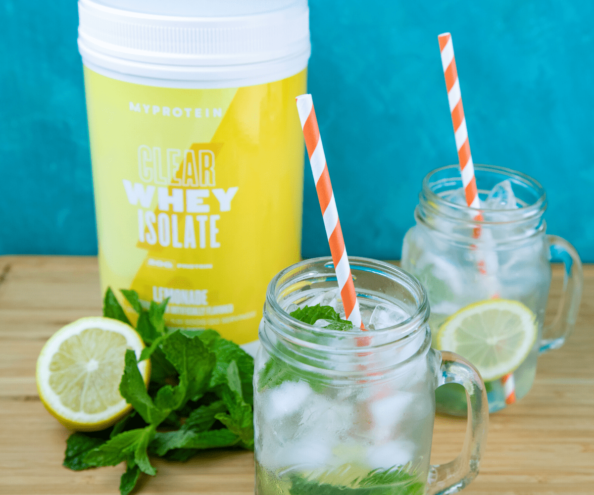 - Place 1 scoop Myprotein Clear Whey Lemonade in a shaker with 12 oz water and shake vigorously. Let settle