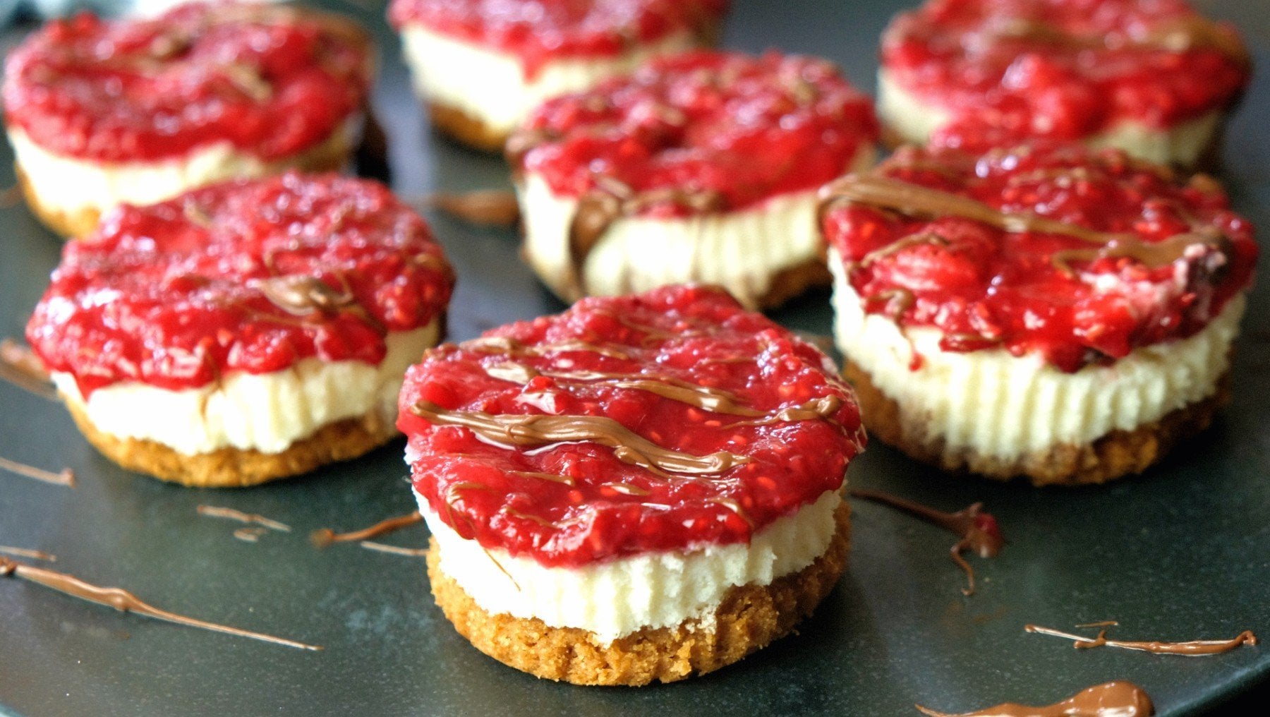 - Remove cheesecakes from oven, top with berry jam and decorate with melted chocolate hazelnut Protein Spread. Transfer to fridge and chill for at least 1 hour, then enjoy!