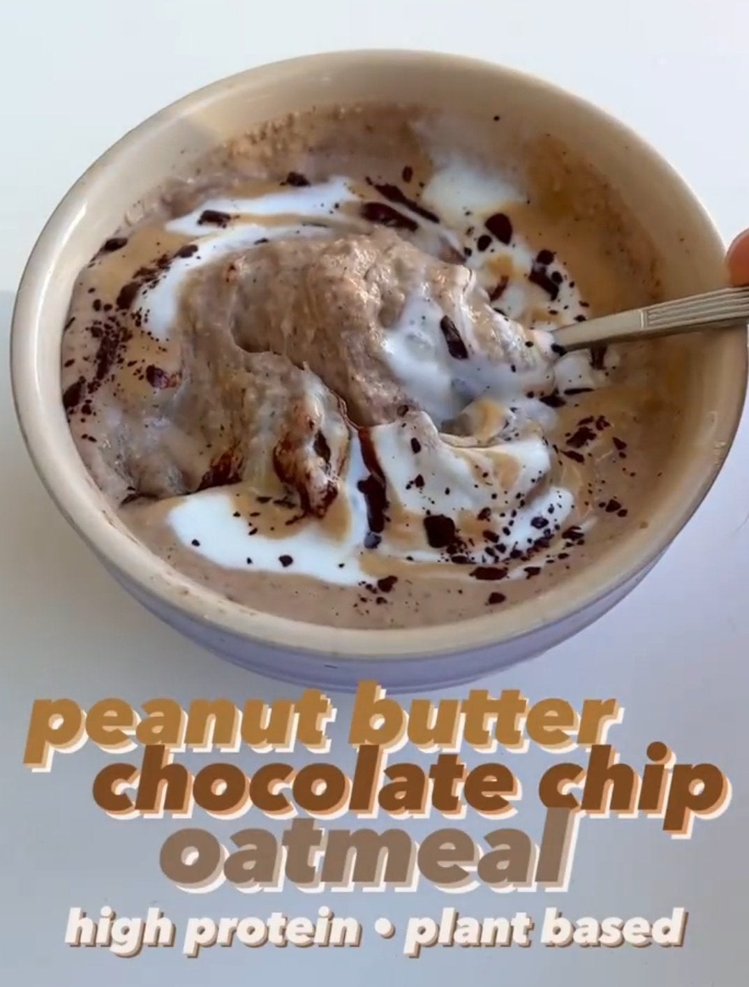 Looking for a new breakfast treat? This Peanut Butter Chocolate Chip Oatmeal from