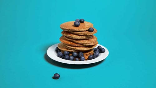 - For the waffles, add all waffle ingredients to a blender or food processor and blitz until smooth. Preheat your waffle maker and spray with a few sprays of non-stick cooking spray.