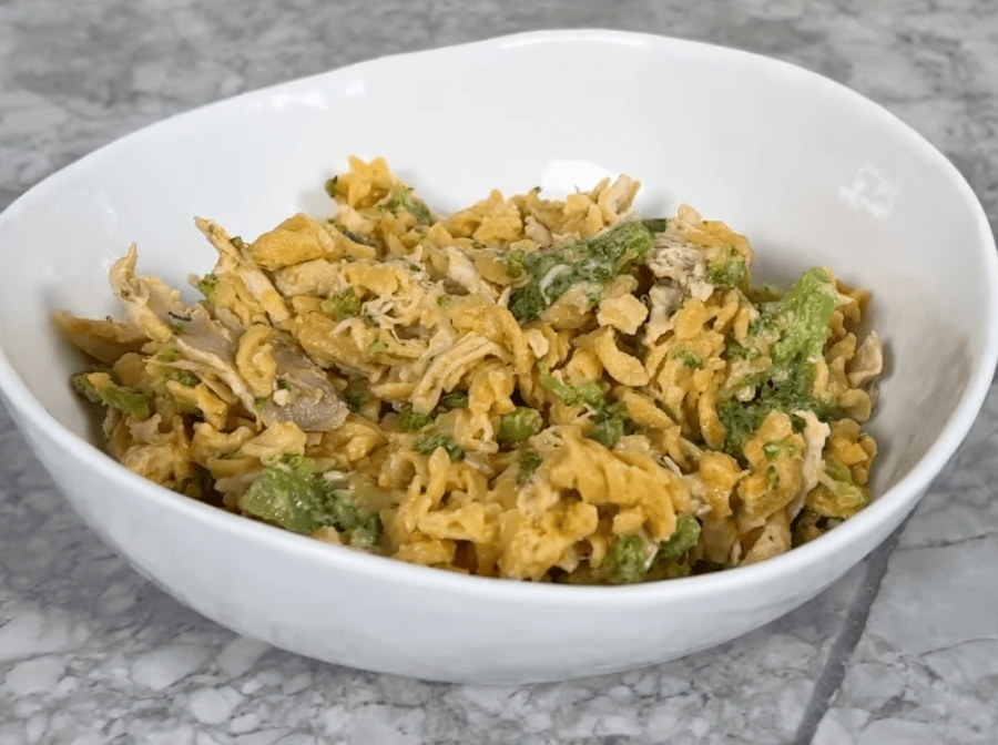 With macaroni, melted cheese, shredded chicken, and broccoli, this comfort food aims to satisfy.