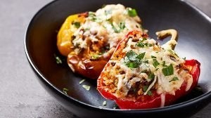 This quick & easy stuffed pepper recipe is the perfect way to get a healthy serving of low GI carbs as they’re packed with bulgur wheat, which is a whole grain that contains high amounts of vitamins, minerals, and fibre. They’ve also got a great protein content thanks to the tasty beef mince filling — ideal for helping you hit those daily targets.