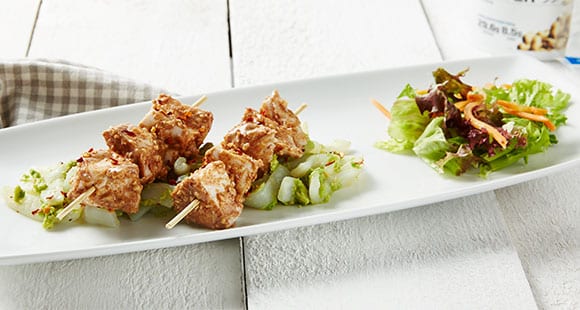 - Once chicken is throughly cooked, cut into cubes and mix with the peanut butter