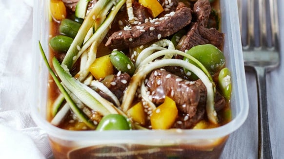 Cook the mince in a frying pan with a little low-calorie cooking spray until completely brown and no pink bits remain. Drain off any excess liquid, remove from the pan, and set aside.