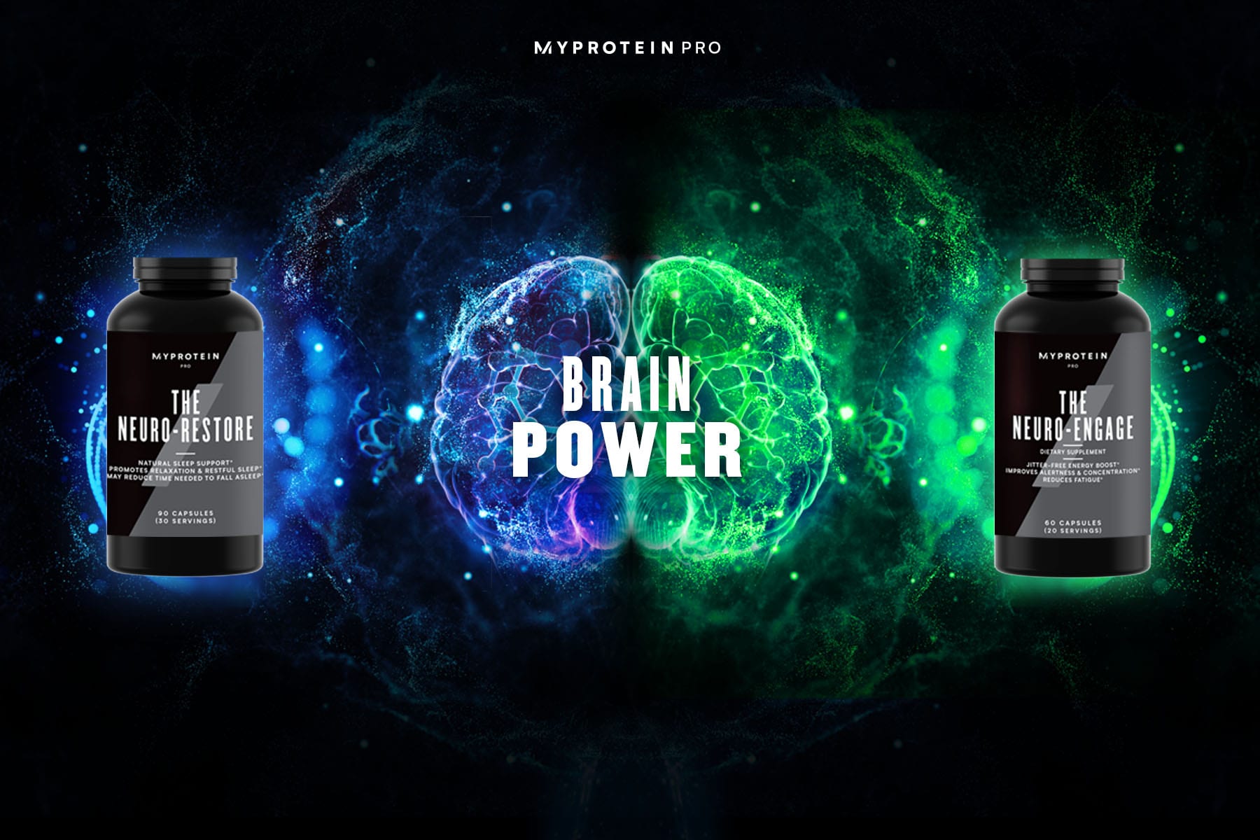 Introducing our exciting new innovation —THE Neuro Range. THE Neuro Engage and THE Neuro Restore are dual nootropic formulas designed to improve attention and concentration during the day and aid your sleep at night. This is the latest cutting-edge supplement in the Myprotein Pro Range.