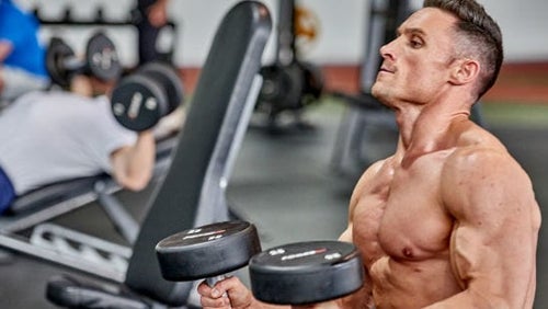 6. Don’t let the dumbbells touch as they meet at the top, holding for a second in the contracted position. Repeat the movement for the number of reps you need.