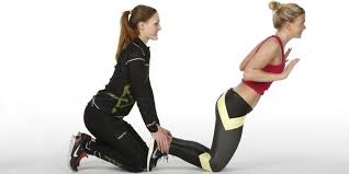 - Find a suitable anchor for your feet/ankles – ask a friend/partner to use their bodyweight and hold you down, or find a secure and stable item/surface that will do the job (make sure your ankles are protected so you don’t get injured).